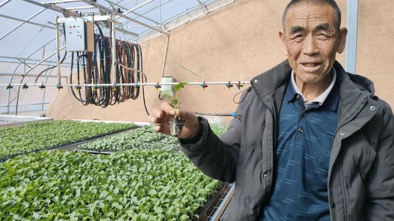 “你看,瓜苗一天一個樣,再過幾天將是綠油油一片?!睏罱f,村里有種香瓜育苗的智能化的拱棚,也有種植菌菇的大拱棚,還有種植蔬菜和香瓜的小拱棚。