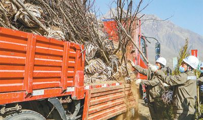 今年3月,石嘴山市參加春季義務植樹的單位員工在搬運樹苗。