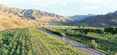 穿越賀蘭山的302省道兩邊,一根根滴灌管道像漁網一樣緊緊將高聳的渣臺包裹?!斑@是為了保證苗木的成活率,從春到冬,至少要澆10次水?!备鹆x紅說。正值開春,只見許多裸露地已經被各類新栽植的樹苗覆蓋。