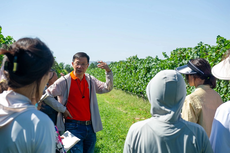 銀川市高質量發展智庫特聘專家在葡萄園指導葡萄種植。銀川市委宣傳部供圖
