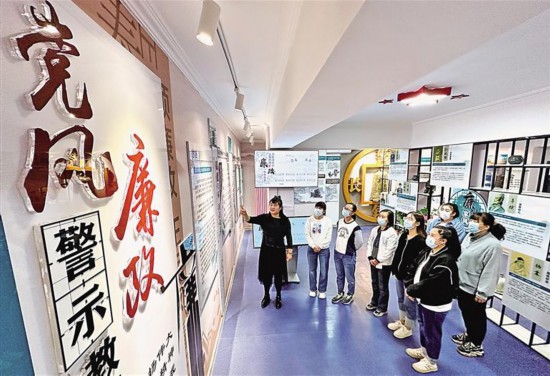 3月30日,銀川市金鳳區上海西路街道清水灣社區黨風廉政警示教育館內,講解員為市民講解貪腐案例。據了解,清水灣社區黨風廉政警示教育館于2022年7月建成,該館以“領廉政,正民風”為主題,由5個板塊組成,涉及政策、案例、數字賦能互動體驗等內容。截至目前,已接待市民及各級單位參觀者2000余人次。 記者 馬楠 王洋 實習生 喬新宇 攝