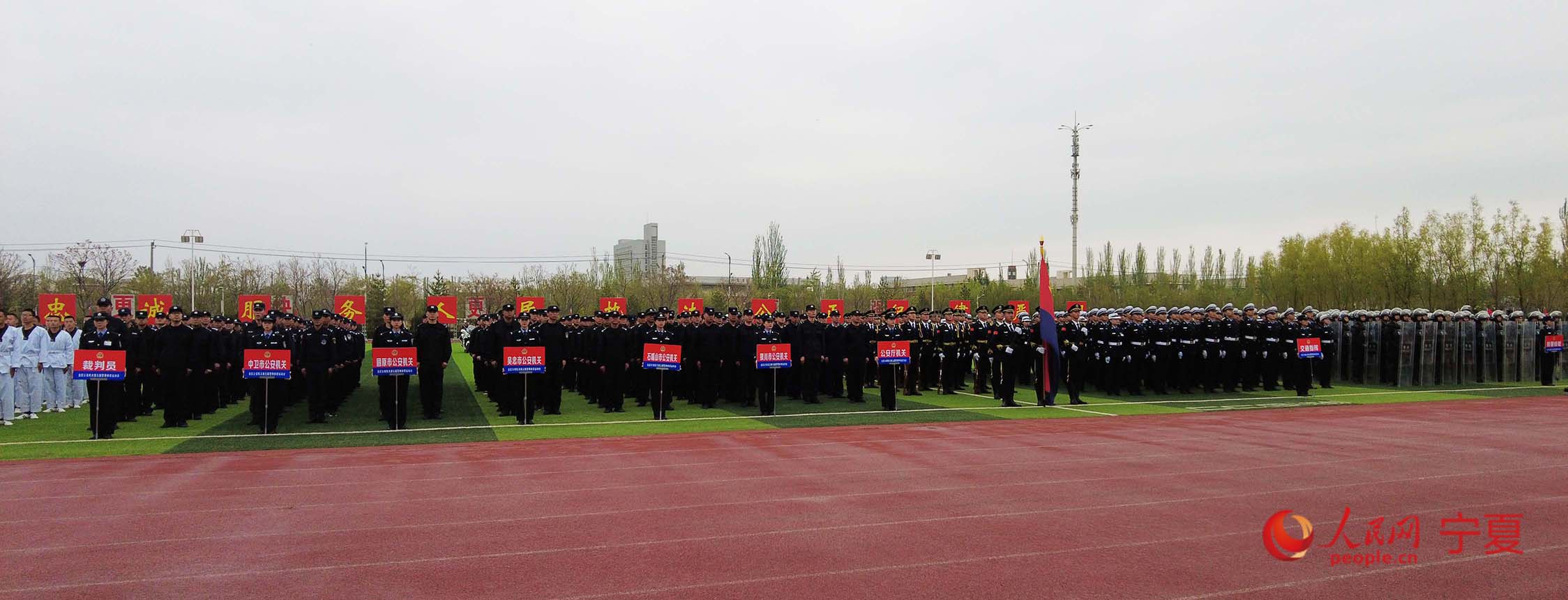 人民網銀川4月24日電(周航)4月23日,寧夏公安機關第五屆警察體育運動會開幕式在寧夏警官職業學院舉行。本次警察體育運動會是全區公安機關近年來舉辦的規格最高、項目最全、規模最大、參賽人數最多的一次綜合性體育盛會。