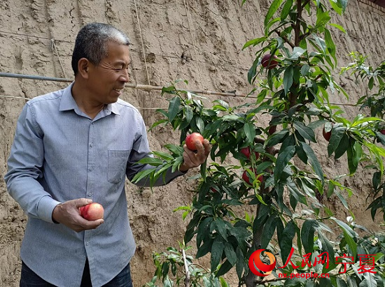 董洪才采摘自家種的油桃。人民網 李甜甜攝