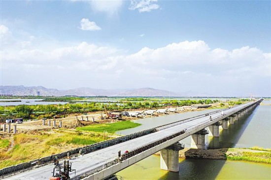 包銀鐵路石嘴山特大橋橋面系施工進度已達60%