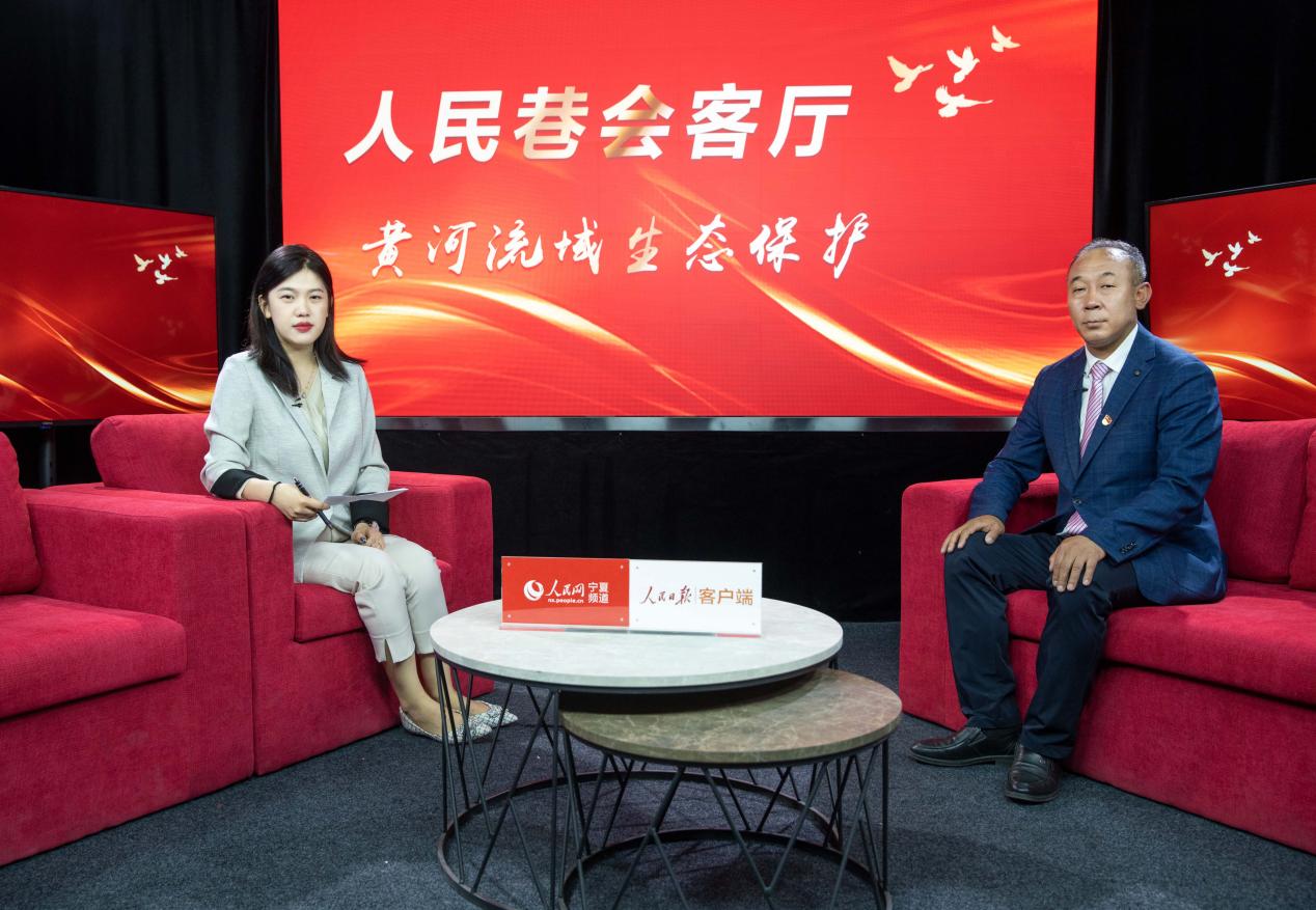 銀川市興慶區政府副區長白輝(右)做客人民巷會客廳。人民網 周航攝