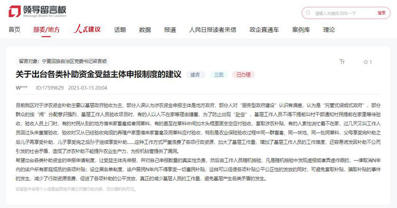 有回音丨網友建議出臺補助資金受益主體申報制度 寧夏:有可借鑒之處