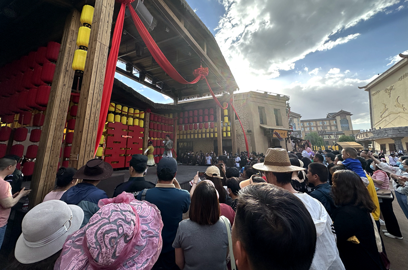 據了解,該演藝項目打造了包括塞上賀蘭、煙火賀蘭、詩意賀蘭、非遺賀蘭等7個內容版塊,以戲劇、詩歌、行為藝術、坐唱、皮影、雜技等多種演藝形式,通過舞臺劇、實景劇、威亞、武術特技、煙火特效、全息投影、水霧等表現方法,全方位展現發生在銀川的歷史事件、民間傳說、民間故事等。帶游客“看演藝、吃美食、逛非遺、游小店、泡溫泉、住民宿”,領略銀川文化旅游特色,是全新的夜間文化演藝業態。