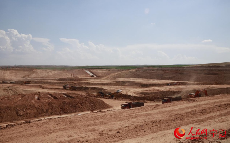利通區吳家溝水庫建設現場。人民網 李甜甜攝