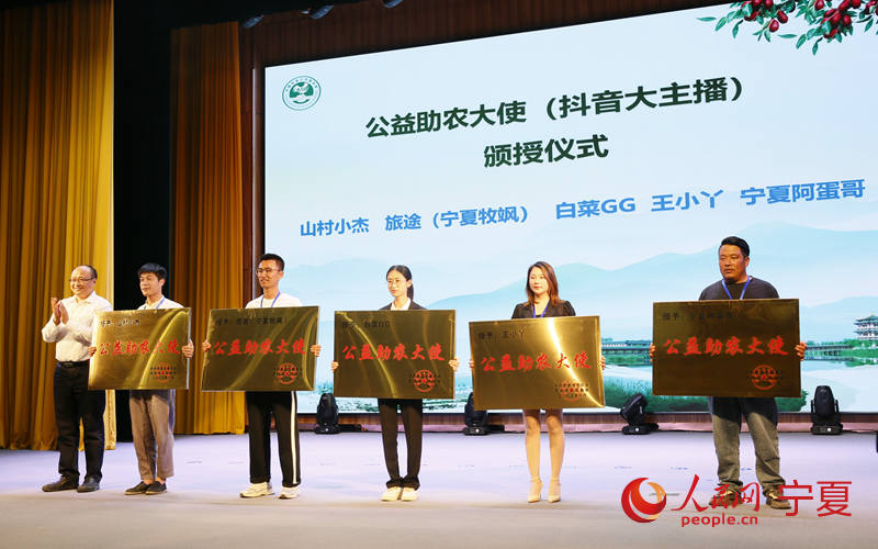頒授靈武市公益助農大使牌匾。人民網記者 穆國虎攝