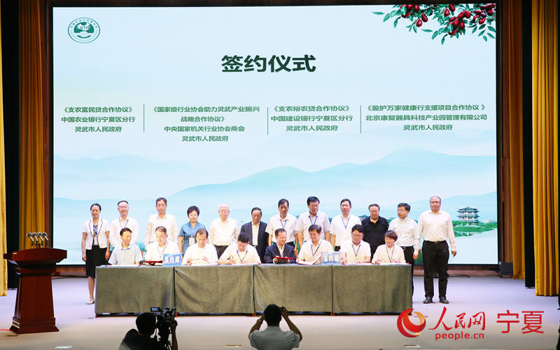 會上,靈武市分別與中華全國農民報協會、中國農業銀行寧夏區分行、中國建設銀行寧夏區分行、北京康復器具科技產業園管理有限公司等單位簽署《國家級行業協會助力靈武產業振興戰略合作協議》《支農富民貸合作協議》《裕農貸款合作協議》《盈護萬家健康行項目合作協議》等四項合作簽約。