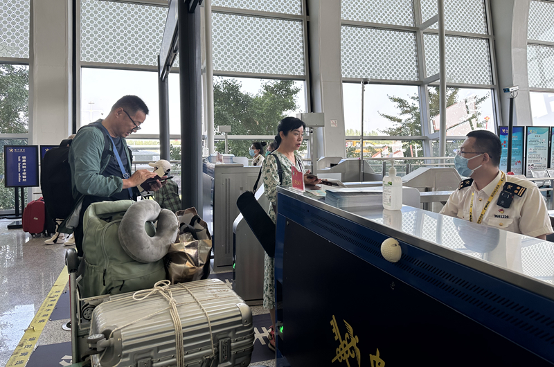 首批旅客正在通過海關通道。人民網記者 高嘉蔚攝