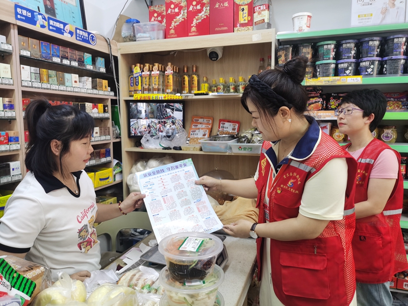 友愛社區黨委書記劉婷帶領社區民警、黨員、網格員到轄區商戶挨家挨戶入戶走訪宣傳,排查安全生產隱患。賀蘭縣委宣傳部供圖