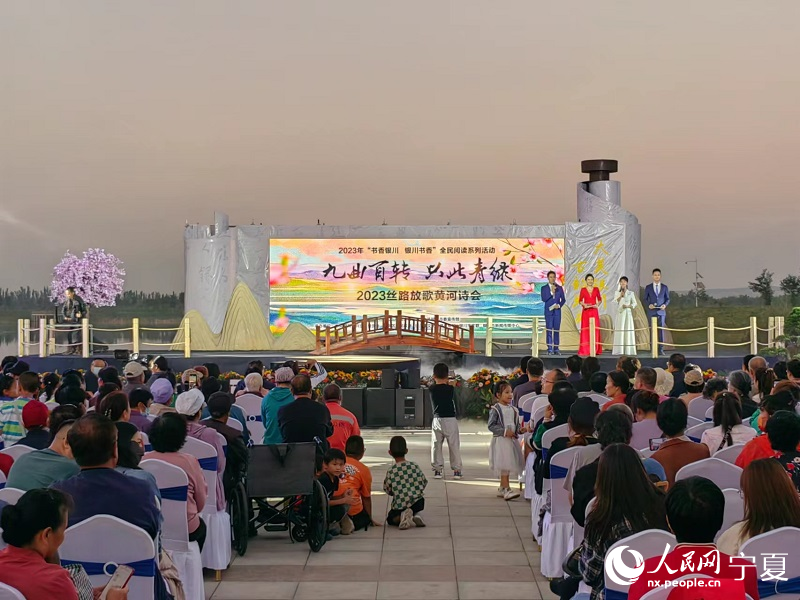 人民網銀川9月10日電(李甜甜)9月9日晚,2023年“書香銀川 銀川書香”全民閱讀系列活動《九曲百轉 只此青綠》絲路放歌黃河詩會在銀川黃河濕地公園舉行。