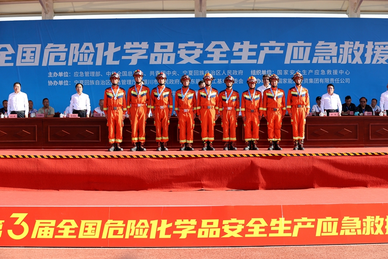 人民網銀川9月12日電 (記者 閻夢婕)9月11日下午,由應急管理部、中華全國總工會、共青團中央、寧夏回族自治區人民政府聯合主辦,國家安全生產應急救援中心組織,國家能源集團承辦的第三屆全國危險化學品安全生產應急救援技術競賽,經過4天的激烈角逐,在寧夏寧東能源化工基地落下帷幕。