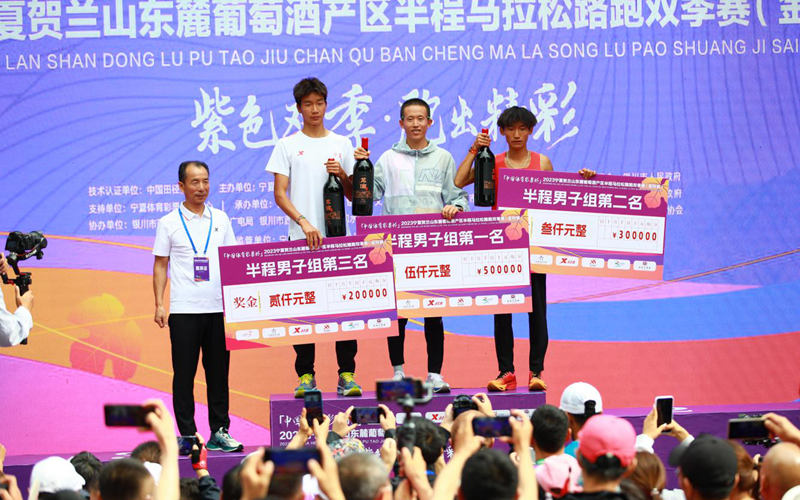 本次賽事主題為“紫色雙季·跑出精彩”,賽事共設半程馬拉松、“醉美”酒莊跑兩個項目,起點均設置在賀蘭山運動公園東門,終點設在寧夏銀川賀蘭山東麓旅游度假區綜合服務中心。半程馬拉松報名人數3000人,“醉”美酒莊跑985人,其中外省運動員1989人。