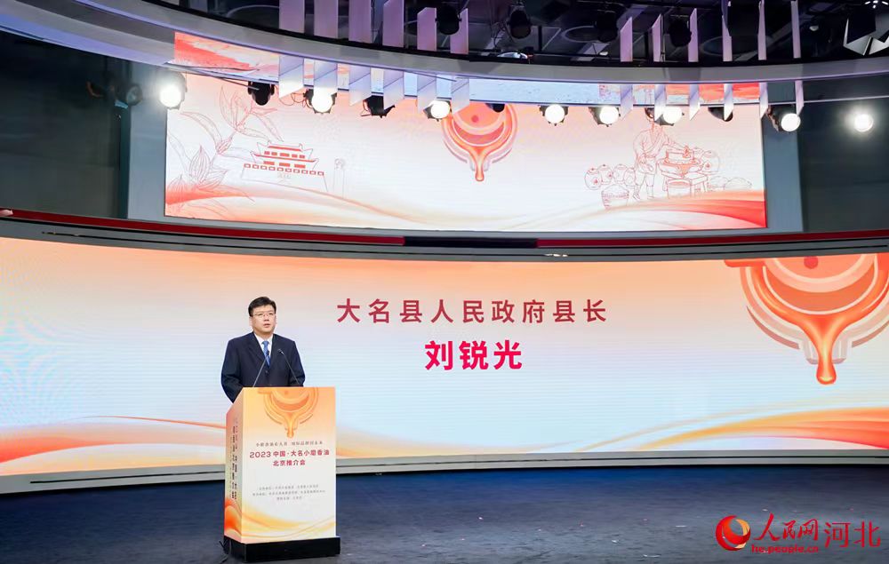 2023中國·大名香油推介會上,大名縣人民政府縣長劉銳光介紹大名縣產業發展相關情況。 人民網記者 周博攝