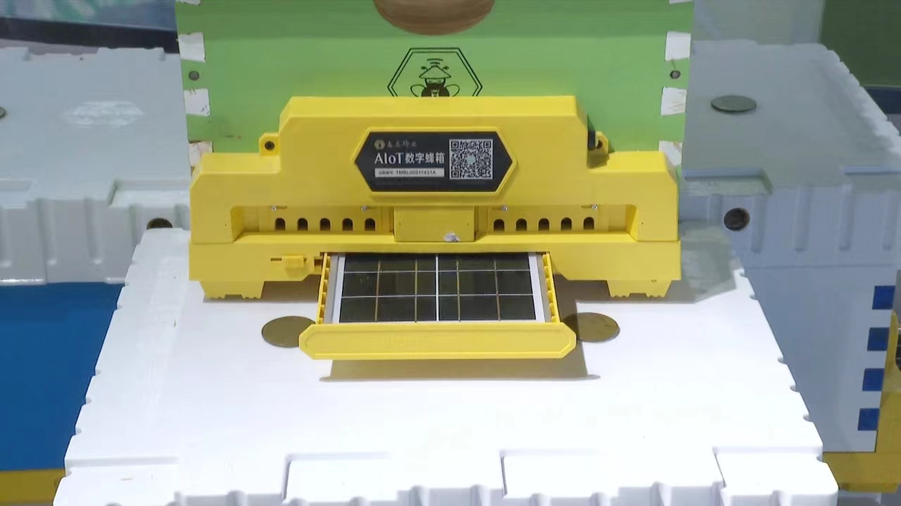 在眾天蜂業養蜂基地,藍天白云綠樹間,幾百個數字化蜂箱錯落有致,蜂鳴聲聲入耳,工蜂進出有序?!皵底只湎渑c傳統蜂箱相比,外觀上多了一塊太陽能板與一個二維碼,通過掃描二維碼,蜂農和游客就可以清晰了解到該蜂箱的溫度、濕度、蜜蜂數量等相關信息?!北娞旆錁I負責人于秀成說。