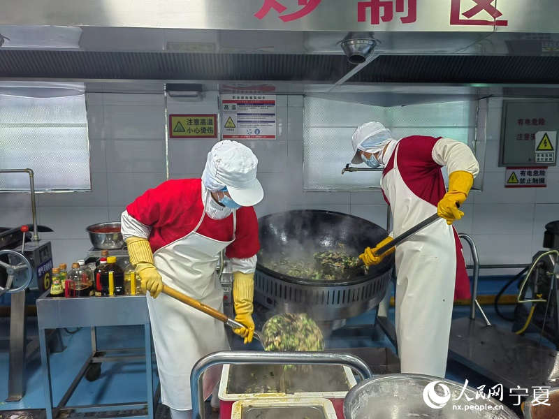 吳忠市利通區利盛實業有限公司菜品炒制區。人民網 李甜甜攝