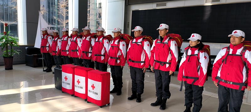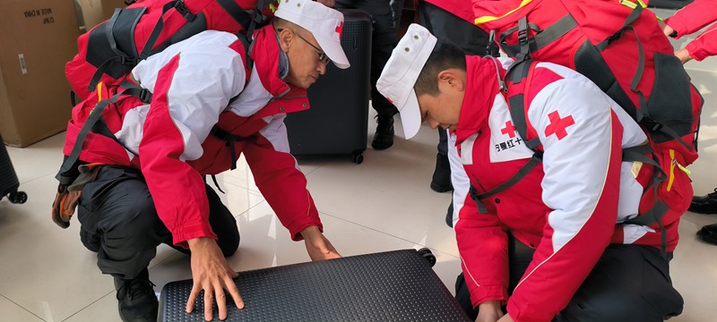 中國紅十字(寧夏)賑濟救援隊隊員整裝出發。寧夏紅十字會供圖