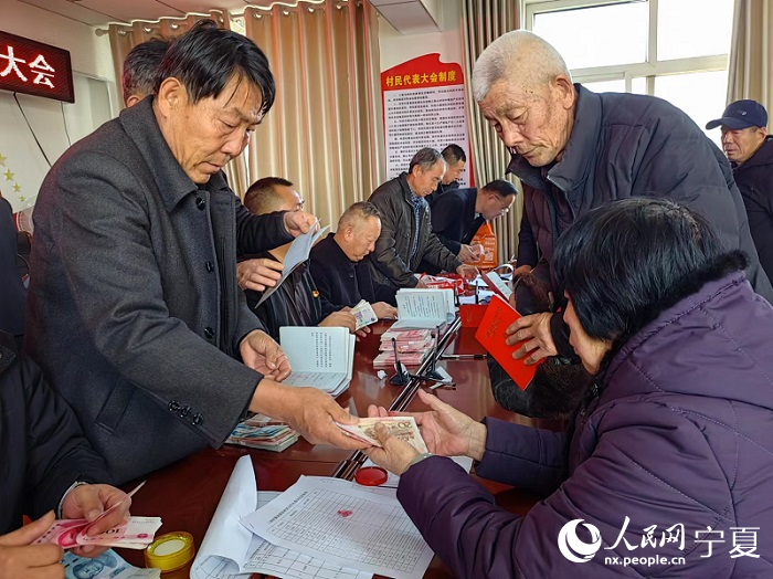 人民網銀川1月29日電(李甜甜)1月29日,銀川市西夏區賀蘭山西路街道辦三閘村股份經濟合作社舉辦2023年度分紅大會。分紅工作期間,全村將有共計325戶1052名股民從村股份合作社中依靠持有的股權領到分紅。