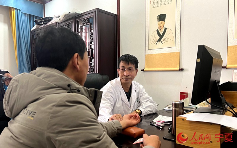 馬立貴醫生為患者包先生把脈問診。人民網記者 穆國虎攝