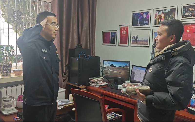 人民網銀川2月7日電(周航、實習生徐樞瑤)一瓶裝著慕士塔格峰下的雪水,一瓶裝著曾經駐守的邊防連隊哨所前的泥土,這是銀川鐵路公安處民警郭永紅十年前對戰友提起的心愿。