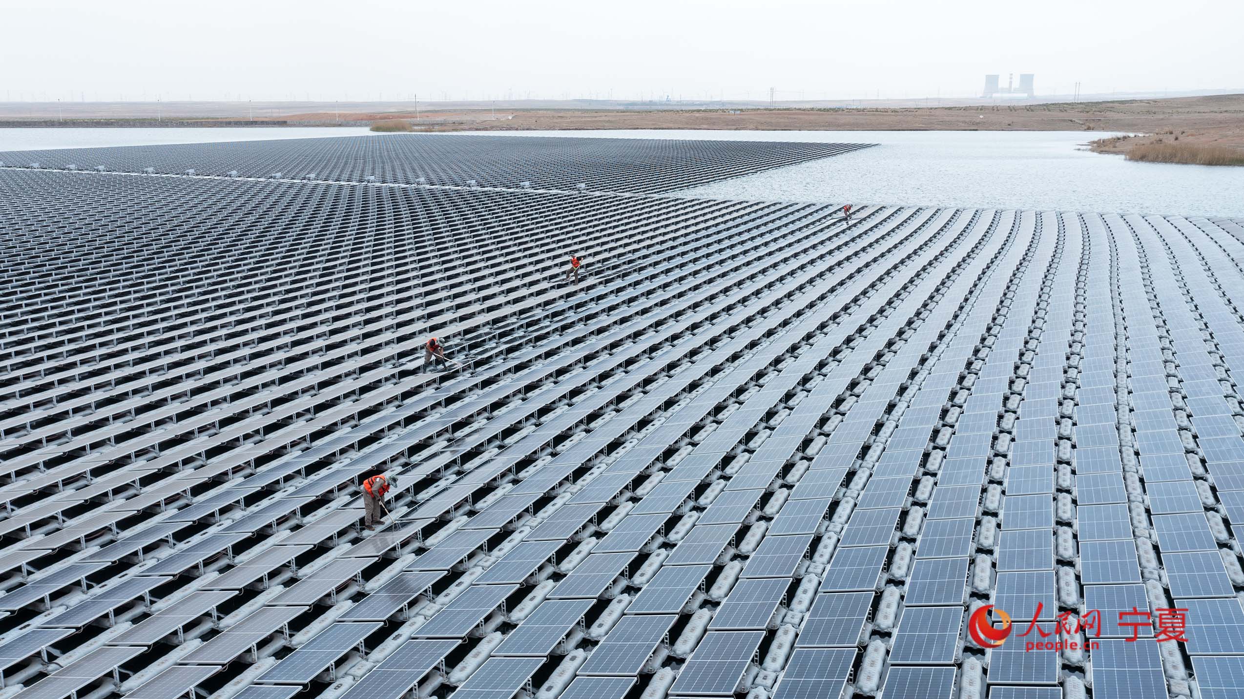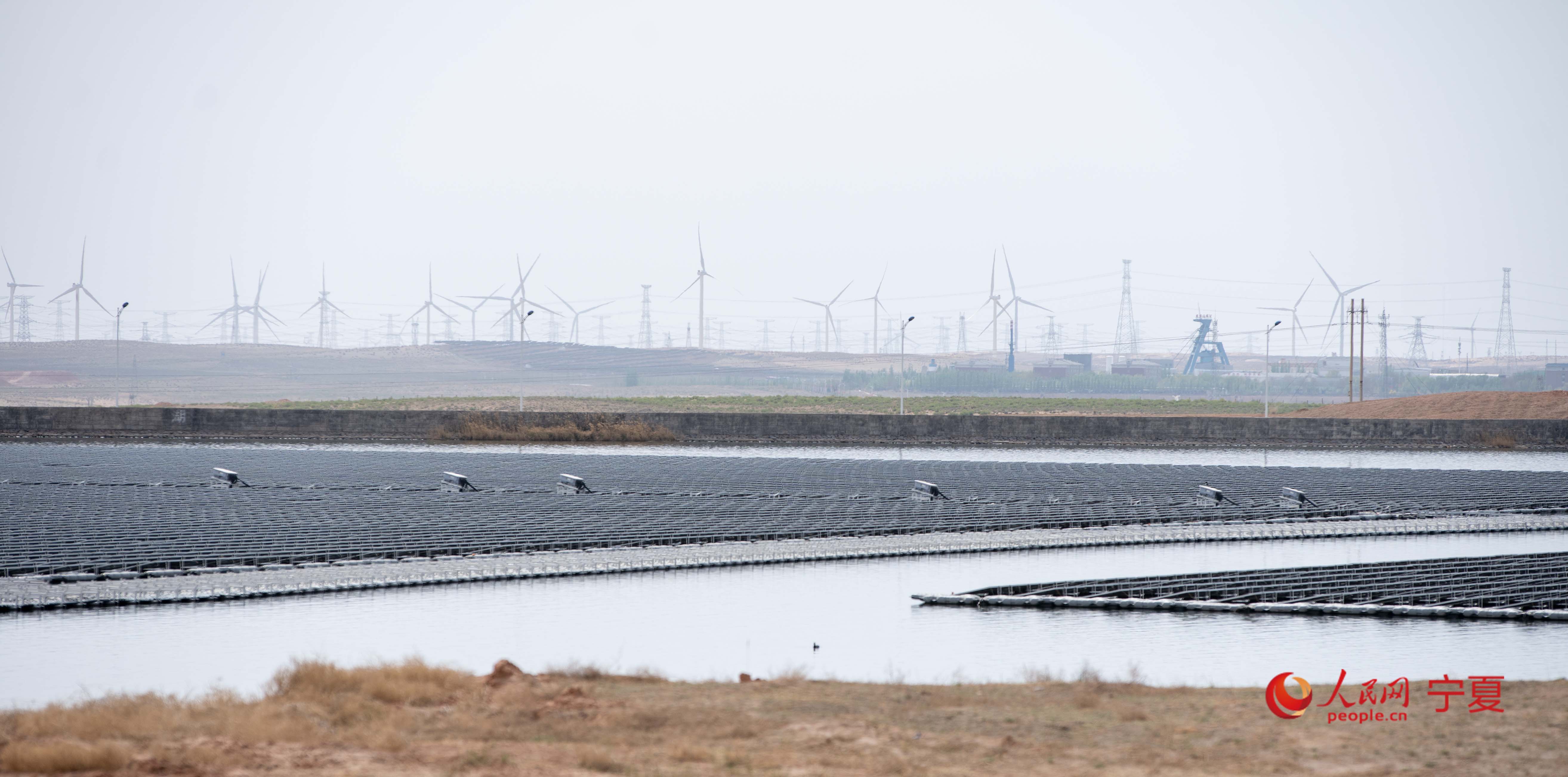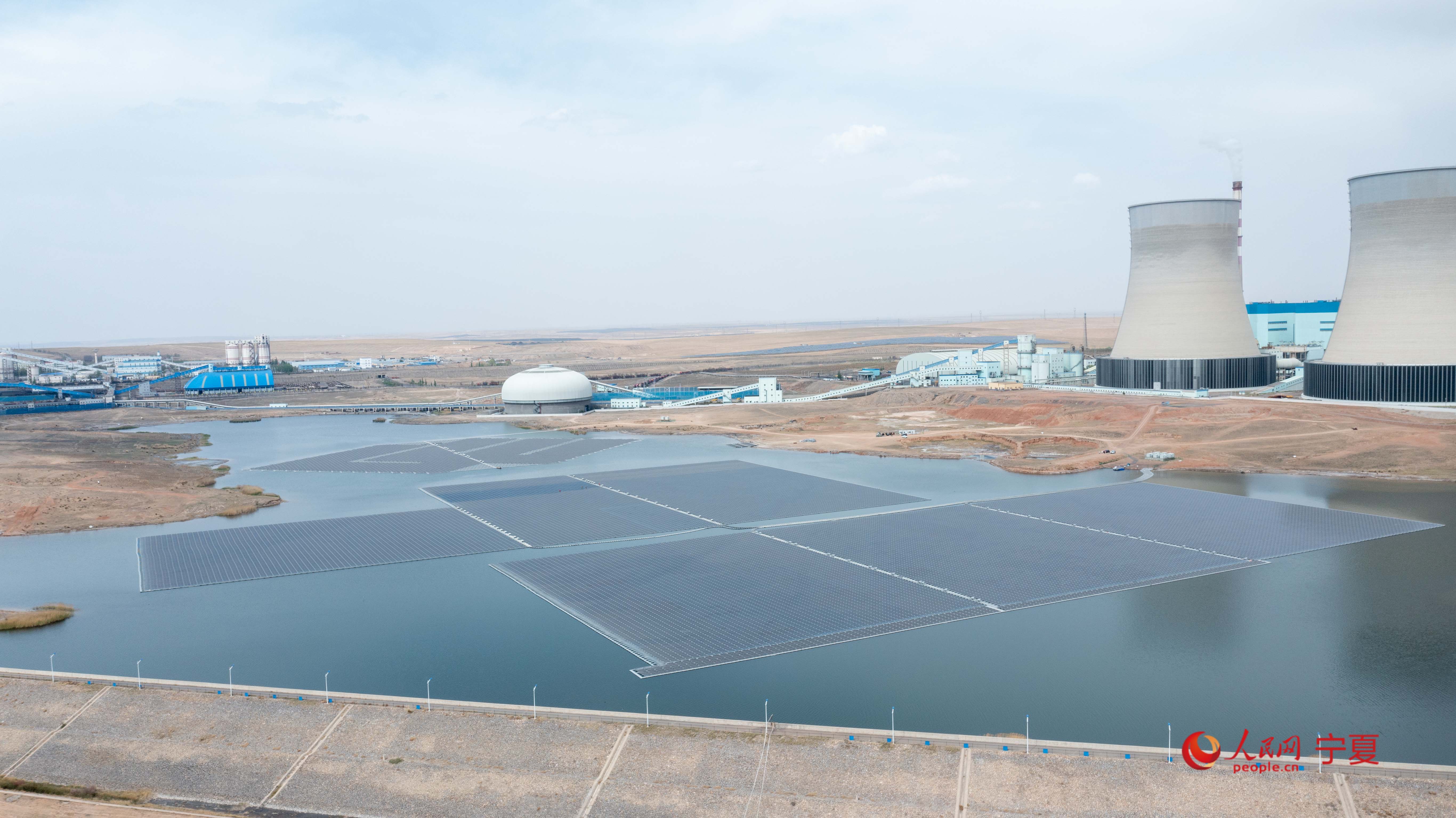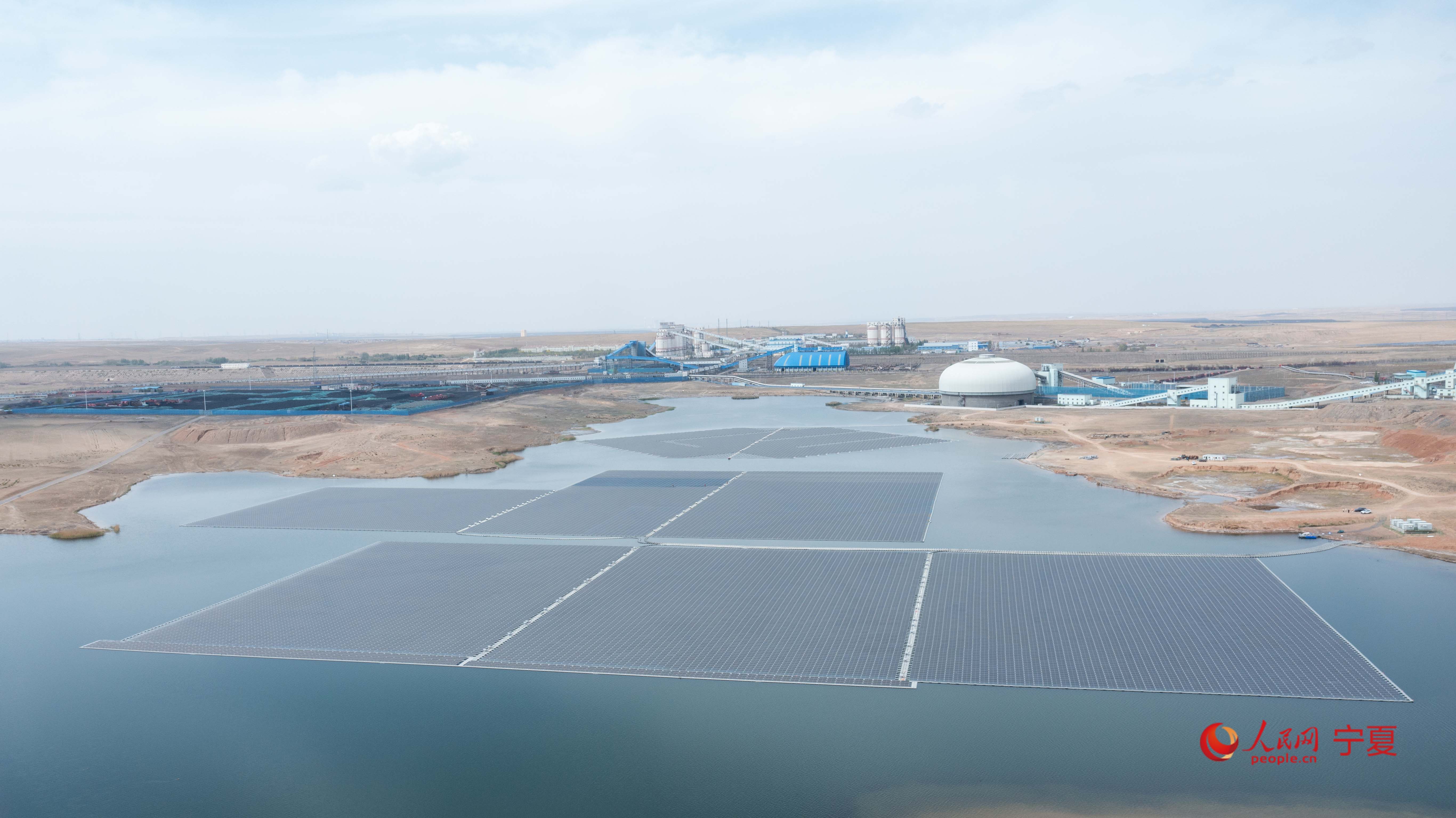 礦井水水域漂浮分布式光伏發電項目全景。人民網 周航攝