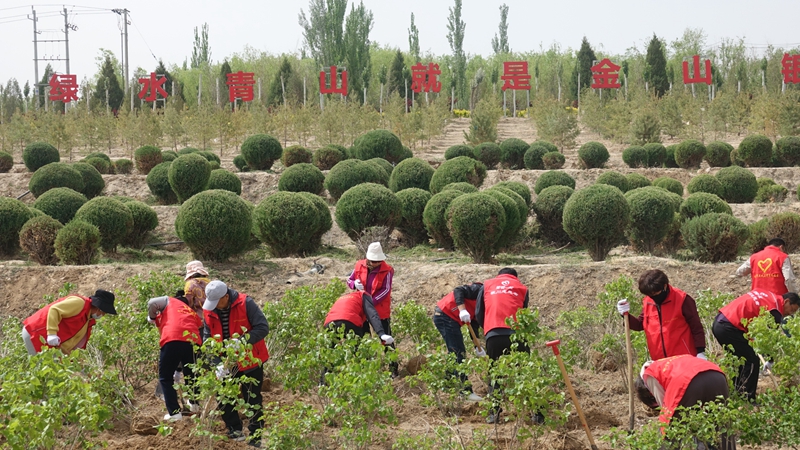 4月28日,銀川市總工會組織40余名銀川市勞動模范和先進工作者代表到靈武市白芨灘開展義務植樹活動,攜手共建“勞模工匠林”,以實際行動踐行“綠水青山就是金山銀山”理念,號召廣大職工積極參與“黃河流域生態保護”主題宣傳實踐活動,為銀川建設黃河流域生態保護先行區示范市貢獻勞模力量。