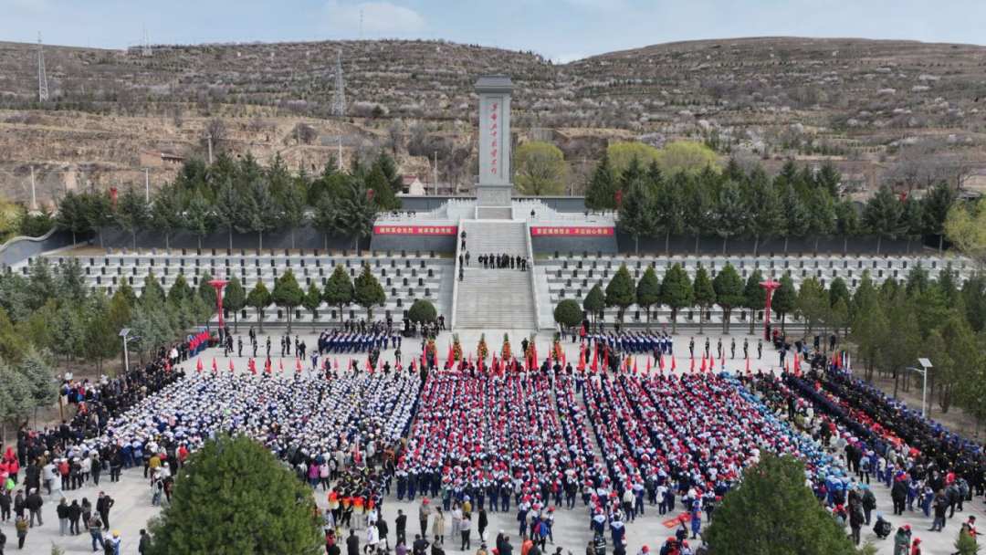 學生們在任山河烈士陵園里緬懷先烈。固原市委宣傳部供圖