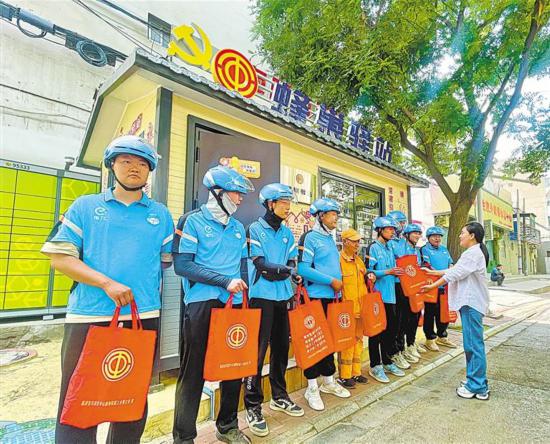 “我們在調研中發現,騎手們與時間賽跑,特別是送餐高峰期,很難抽出時間休息。等餐累了,就在店門口一蹲。飯涼了,只能將就吃。他們需要一個能喝上熱水、吃上熱乎飯的歇腳點?!苯瘌P區滿城北街街道立交橋社區黨委書記張紫嬌告訴記者,“我們召開騎手座談會,了解他們的需求。2021年5月,在這里建起戶外勞動者服務站,免費提供歇腳休息、飲水充電、飯菜加熱、緊急醫療等服務,給奔波在路上的騎手們一個落腳的地方?!?/p>