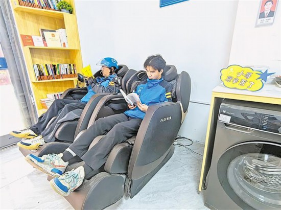 戶外勞動者驛站面積不大,但“累可歇腳、渴可喝水、冷可取暖、熱可納涼、急可如廁”,滿足了環衛工人、快遞員、外賣小哥、貨車司機等群體的需求。截至2023年年底,全區有暖“新”驛站、“司機之家”等戶外勞動者服務站點1083個。