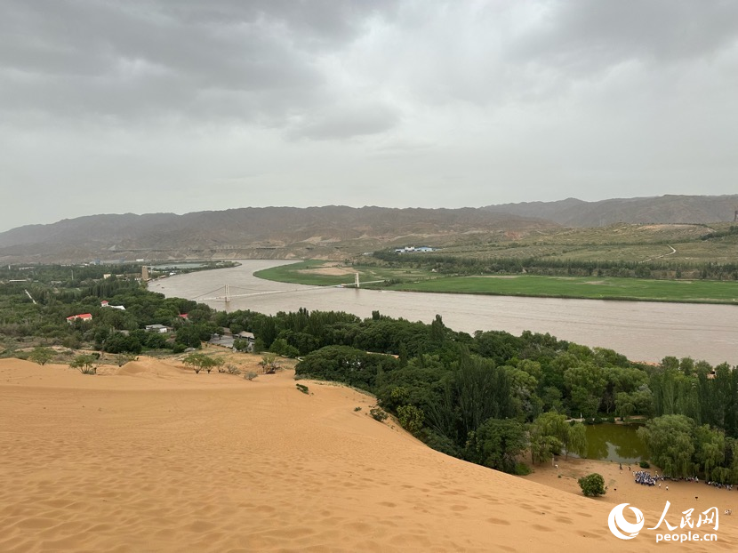 黃河進入寧夏中衛,騰格里沙漠和黃河在此邂逅。人民網 樊美琪攝