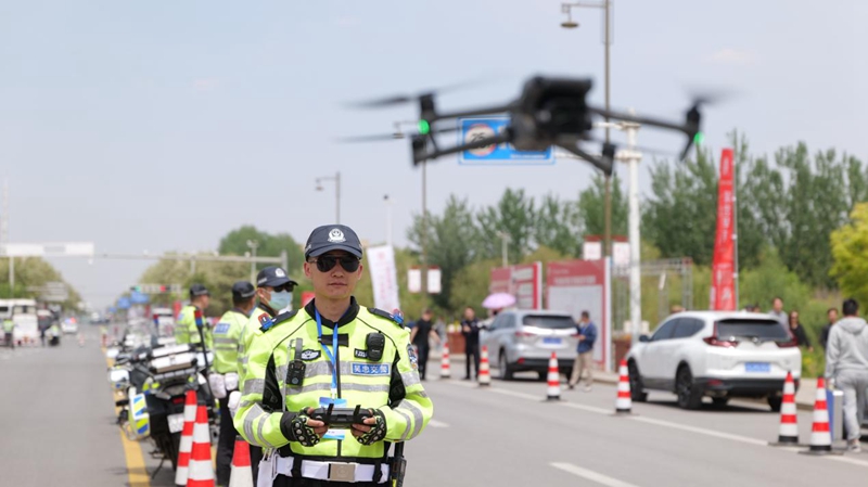 吳忠交警使用無人機開展勤務保障。寧夏公安廳供圖