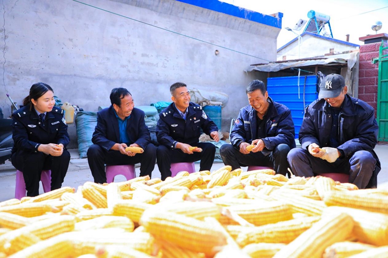 中衛市公安局沙坡頭區分局鎮羅派出所民警與群眾一起拉家常。寧夏公安廳供圖