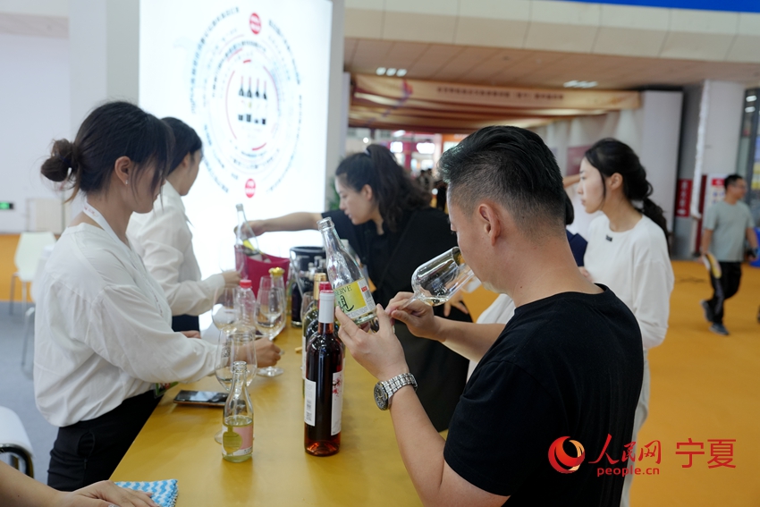 觀展者品嘗賀蘭山東麓葡萄酒。人民網記者 梁宏鑫攝
