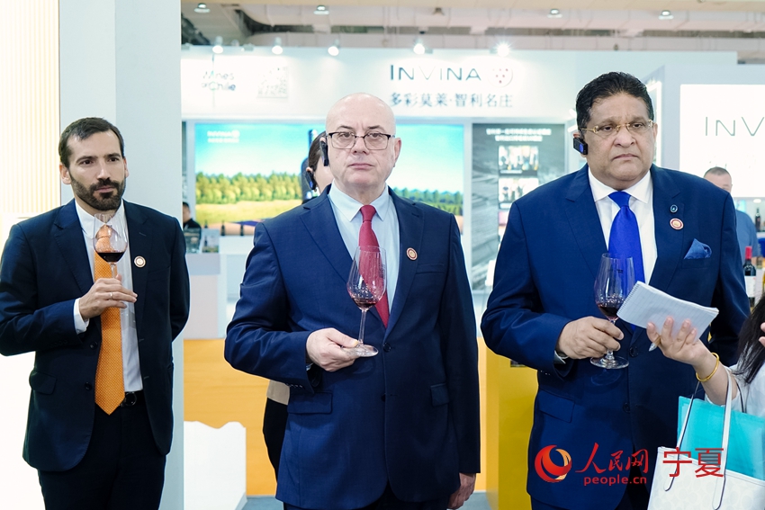 外籍嘉賓品嘗賀蘭山東麓葡萄酒。人民網記者 梁宏鑫攝