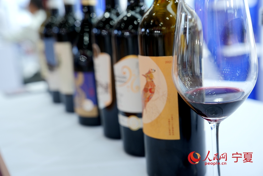 展會現場展出的賀蘭山東麓葡萄酒。人民網記者 梁宏鑫攝