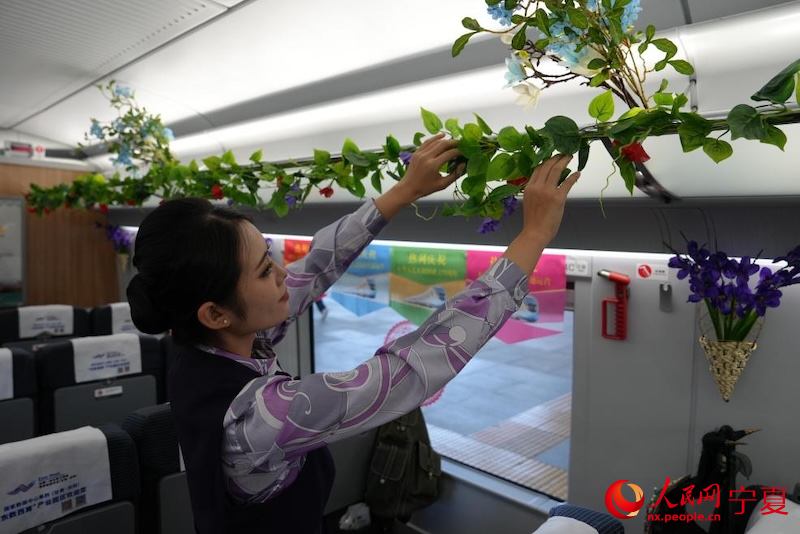 乘務員精心布置首發列車。人民網記者 梁宏鑫攝