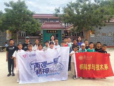 今年7月,復旦大學社會實踐基地在木蘭書院成立,服務周邊鄉村兒童和中小學生。圖為復旦大學支教實踐團與孩子們的合影。