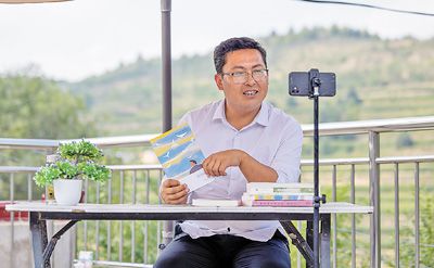 2019年,寧夏西吉縣作協主席史靜波回到家鄉楊河村創建木蘭書院,通過文學交流、研學體驗等活動,探索文學賦能鄉村全面振興。圖為史靜波在錄制介紹西吉文學的短視頻。