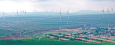 位于紅寺堡區新莊集鄉的寧夏大唐國際紅寺堡三期風電項目。