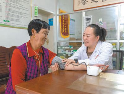 紅寺堡區沙泉村的村醫為村民測量血壓。