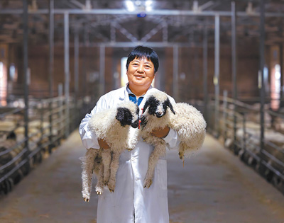 紅寺堡區一家養殖公司的養殖車間,科研人員展示培育的灘羊新品種。