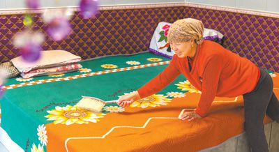 紅寺堡區弘德村村民劉克瑞和妻子馬建花準備出門工作。