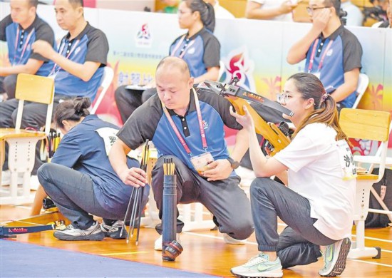 寧夏裁判員檢查運動員裝備。 記者 王曉龍 王剛 攝