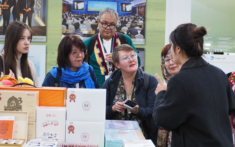 在邊會區,國家林草局會同寧夏回族自治區人民政府等地方政府,中國科學院新疆生態與地理研究所等科研機構,清華大學等高校,中國綠化基金會等民間組織和國家電力投資集團等企業合作方,舉辦“中國‘綠色長城’走向世界”“推動生態脆弱區綠富同興 探索可持續發展目標實現路徑”“第二屆‘一帶一路’生態治理國際民間合作論壇”等主題鮮明、特色突出10多場邊會活動。