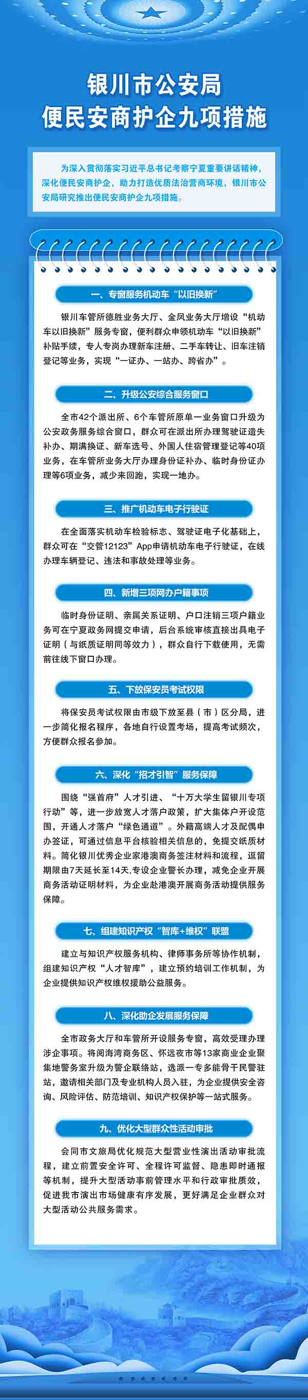 寧夏銀川市公安局出臺便民安商護企九項措施