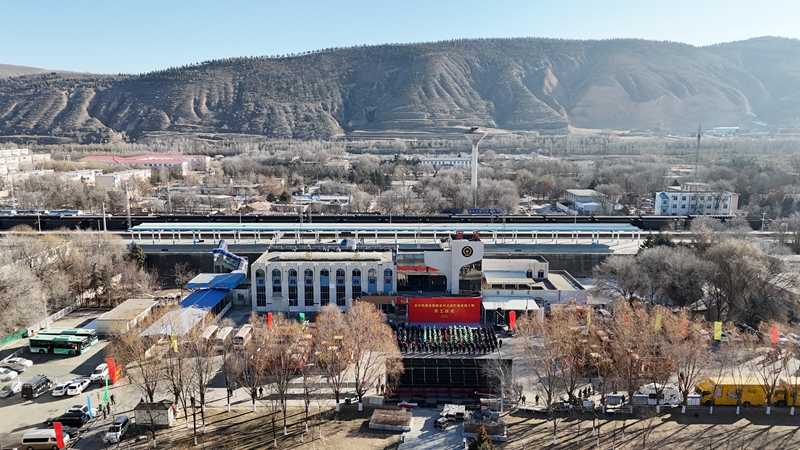 寶中鐵路平涼至中衛段擴能改造工程開工建設。王喜棟攝