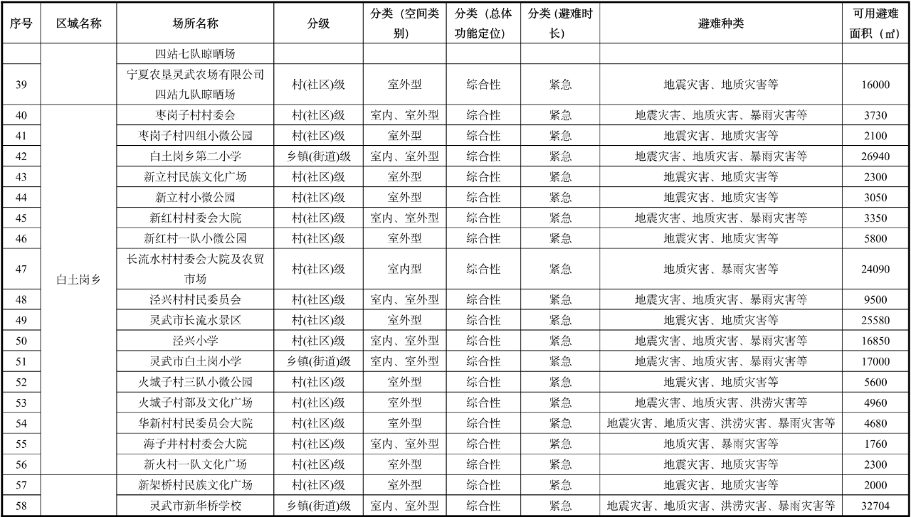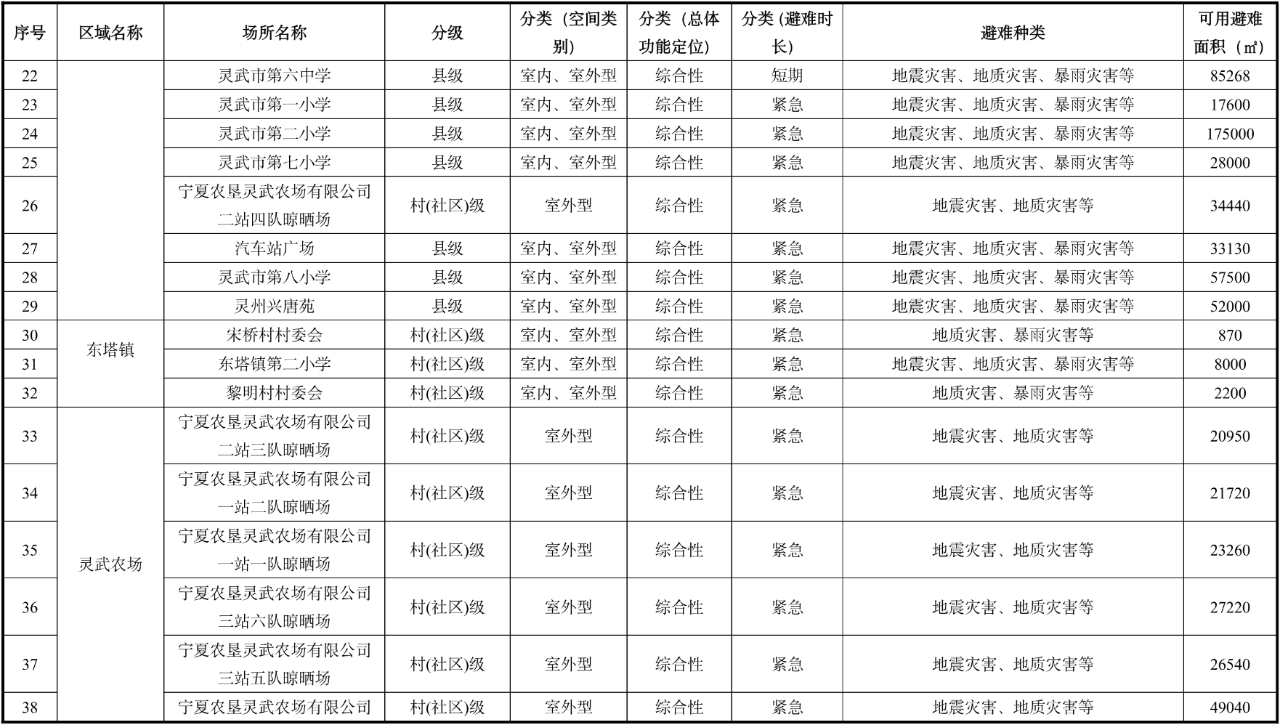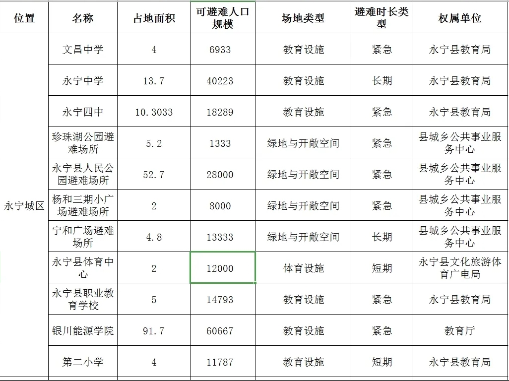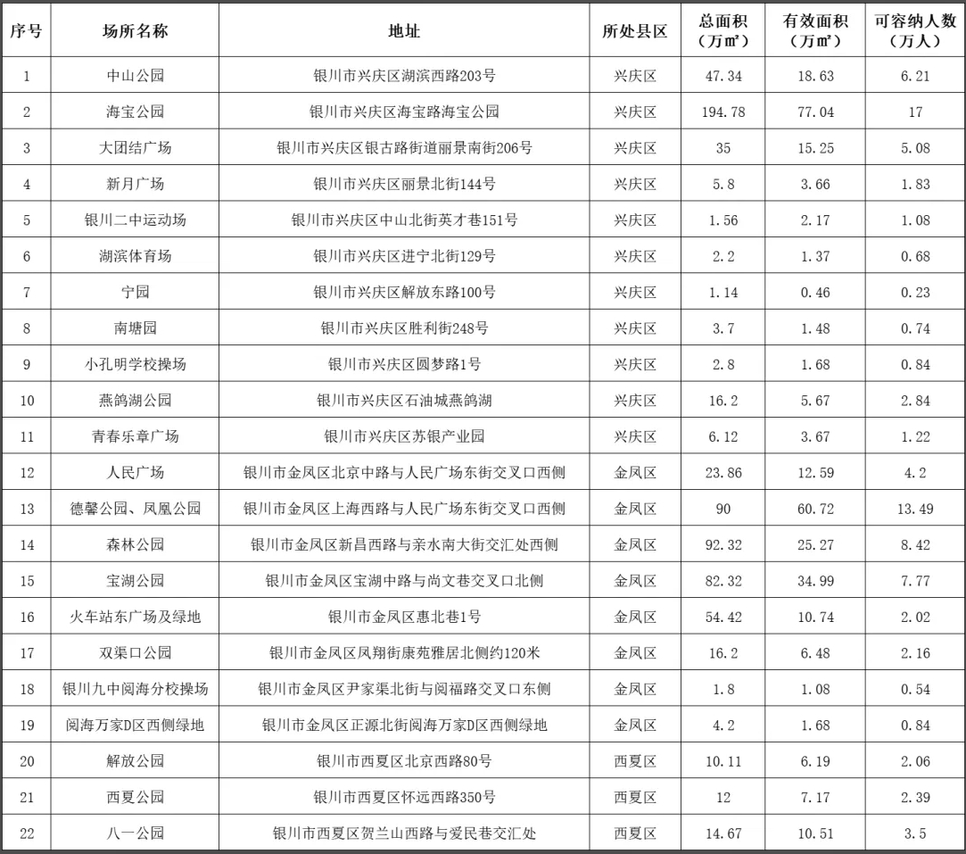 寧夏銀川市應急避難場所匯總