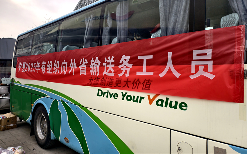 寧夏2025年有組織輸送務工人員車輛即將發車。人民網記者 梁宏鑫攝